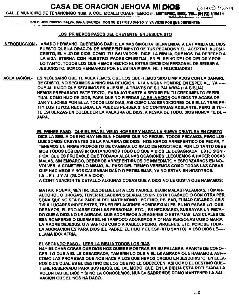 IGLESIA CRISTIANA, CASA DE ORACION JEHOVA MI DIOS